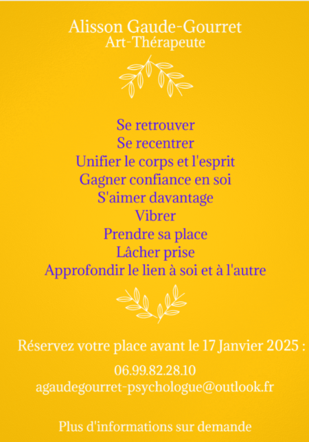 - Afin de créer et maintenir une ambiance de confiance ainsi qu’une cohésion de groupe qualitative, aucune nouvelle inscription ne sera acceptée après la première séance. Certaines séances pourront être manquées si nécessaire mais une dynamique d’engagement sur l’ensemble de la session est tout de même souhaitée.